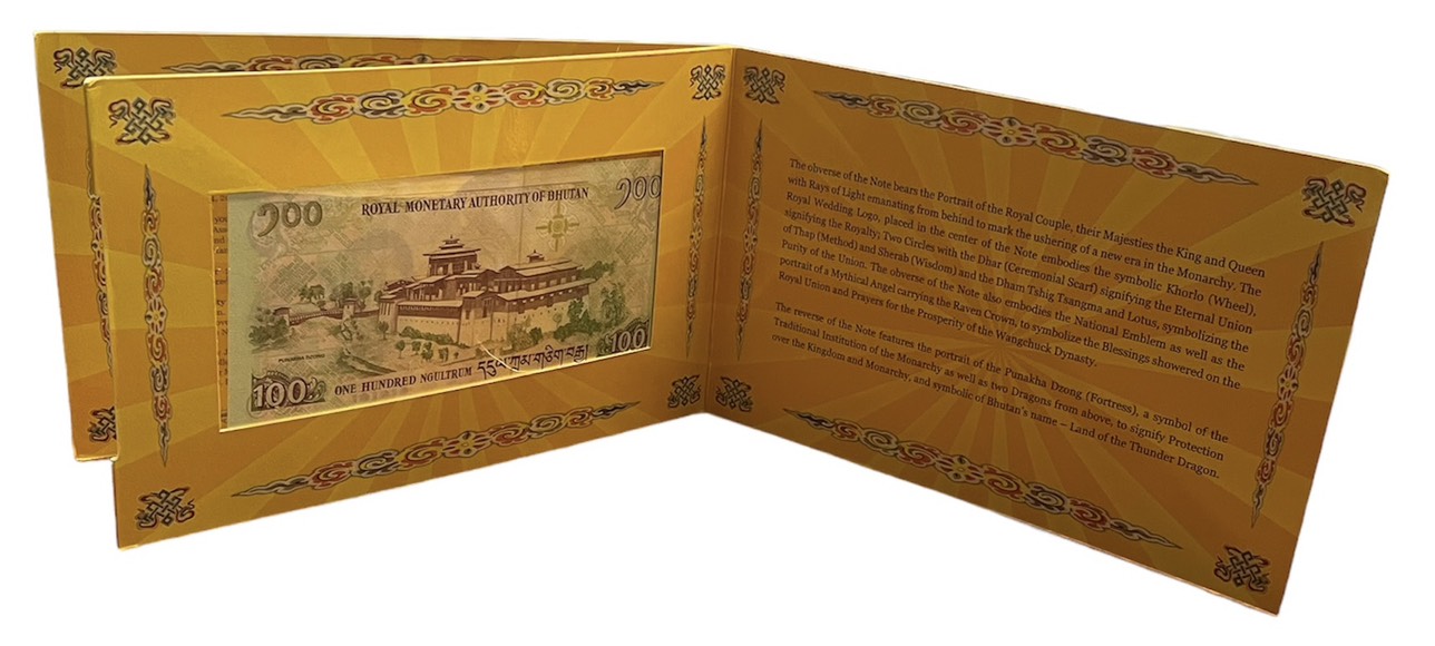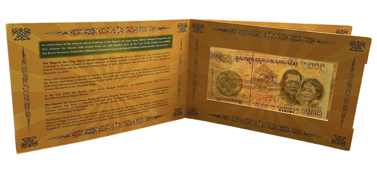 Бутан 100 нгултрумов 2011 королевская свадьба, Ташинчхо-дзонг, в оригинальном буклете Pick 35 a бумага UNC (пресс) 000-00-00