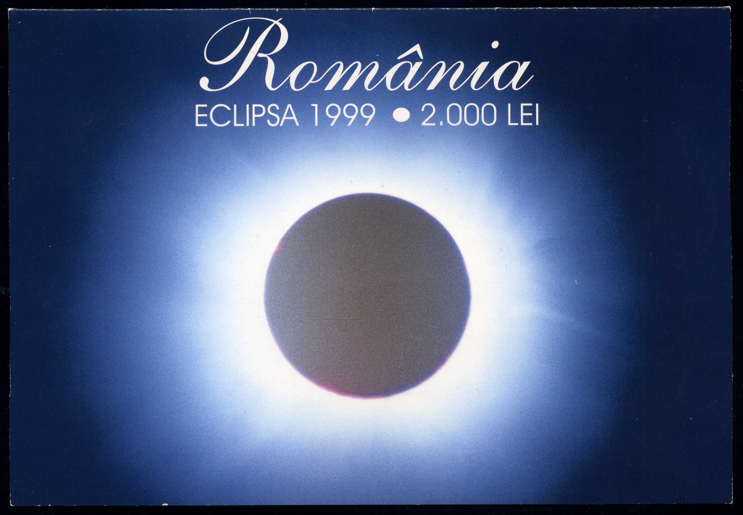 Румыния 2000 леев 1999 миллениум, солнечная система, солнечное затмение над Румынией, 11 августа 1999, серия 001 А, в оригинальном буклете Pick 111b пластик UNC (пресс) 3-4-11-51