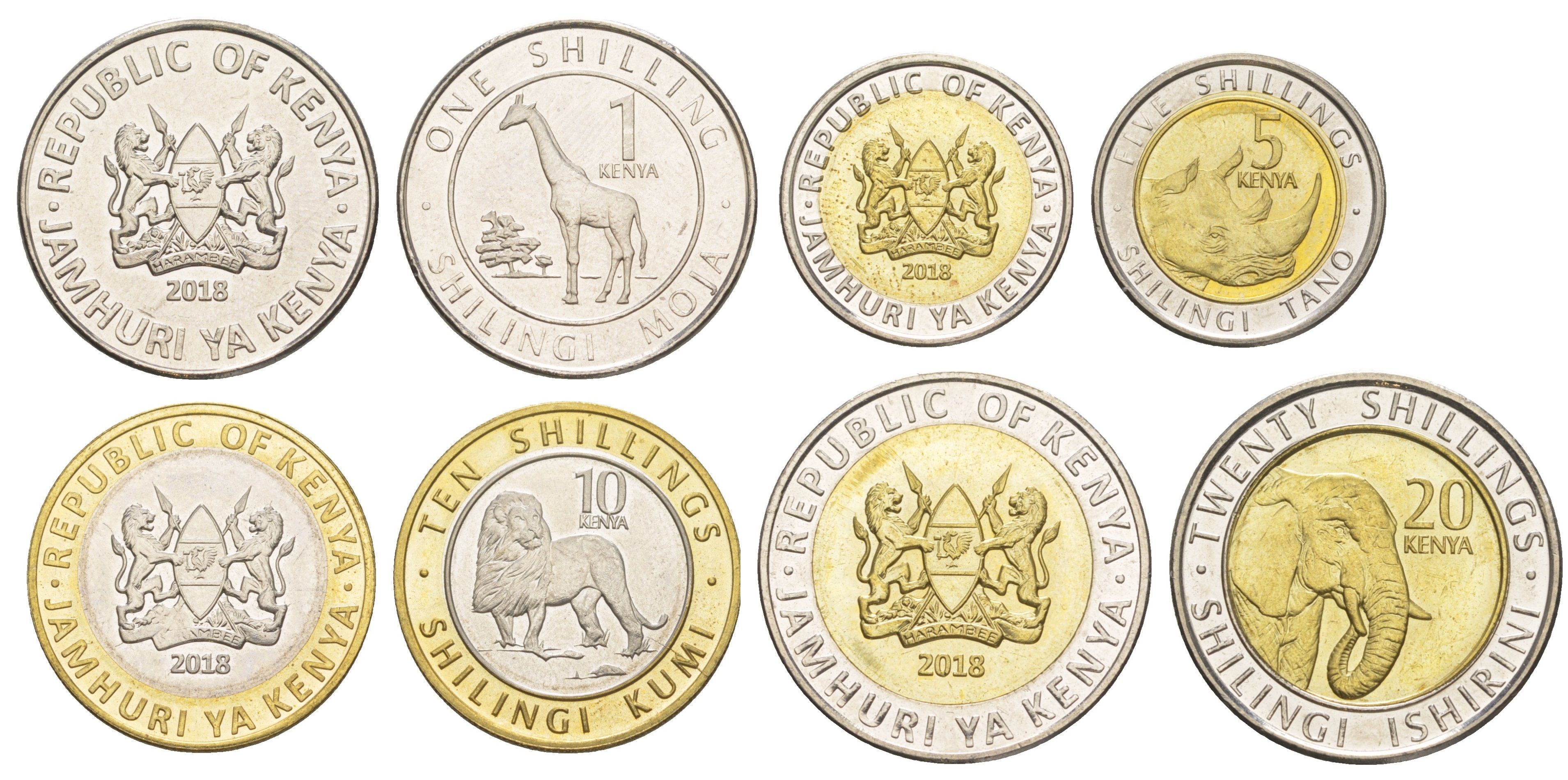 Кения полный годовой набор из 4 монет (1, 5, 10 и 20 шиллингов) 2018 KM 45, 46, 47 и 48 UNC N2-67