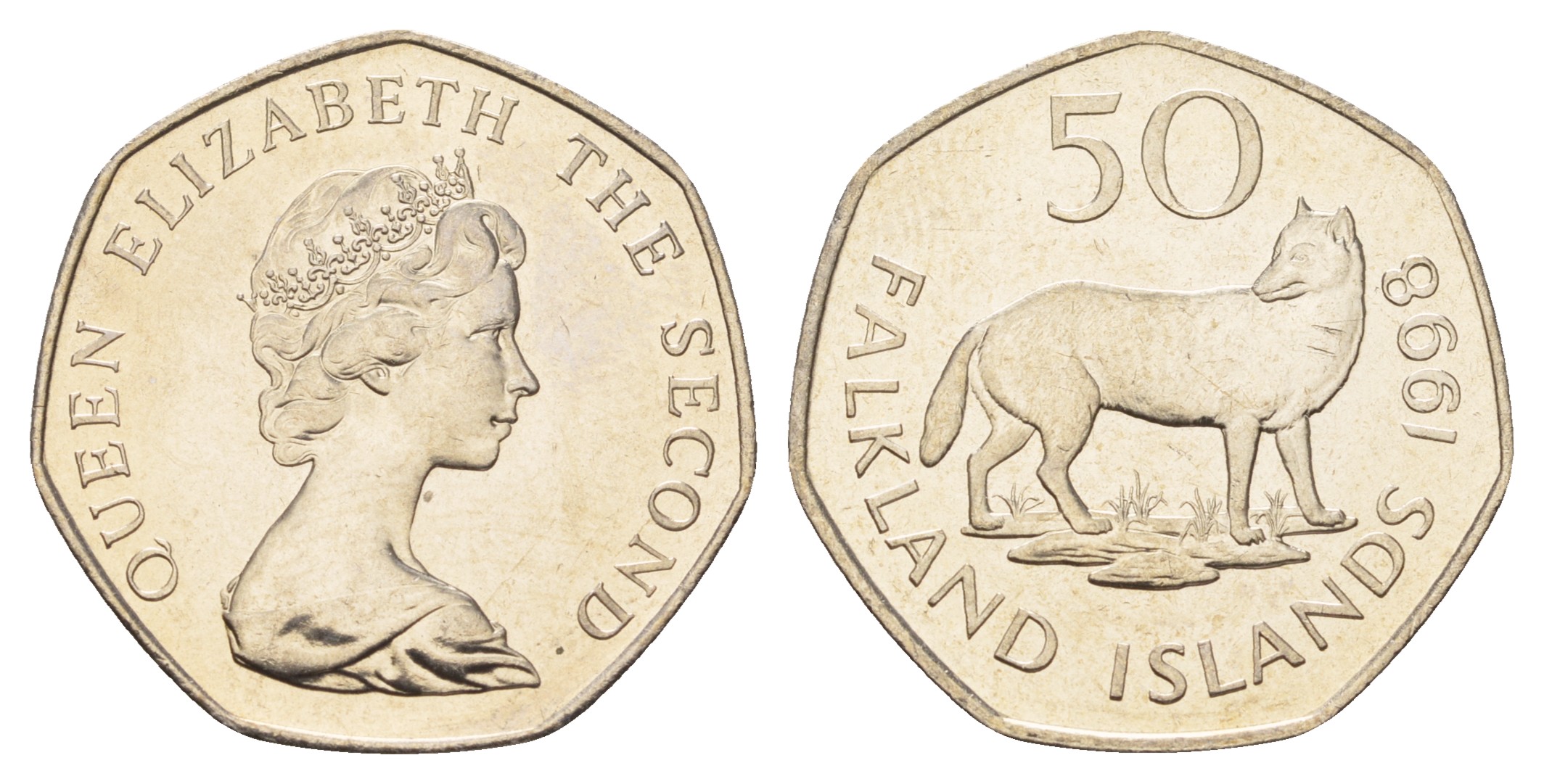 Фолклендские острова (Фолкленды) 50 пенсов 1998 фолклендский волк (варрах) KM 14.2 медно-никель UNC 4675-113