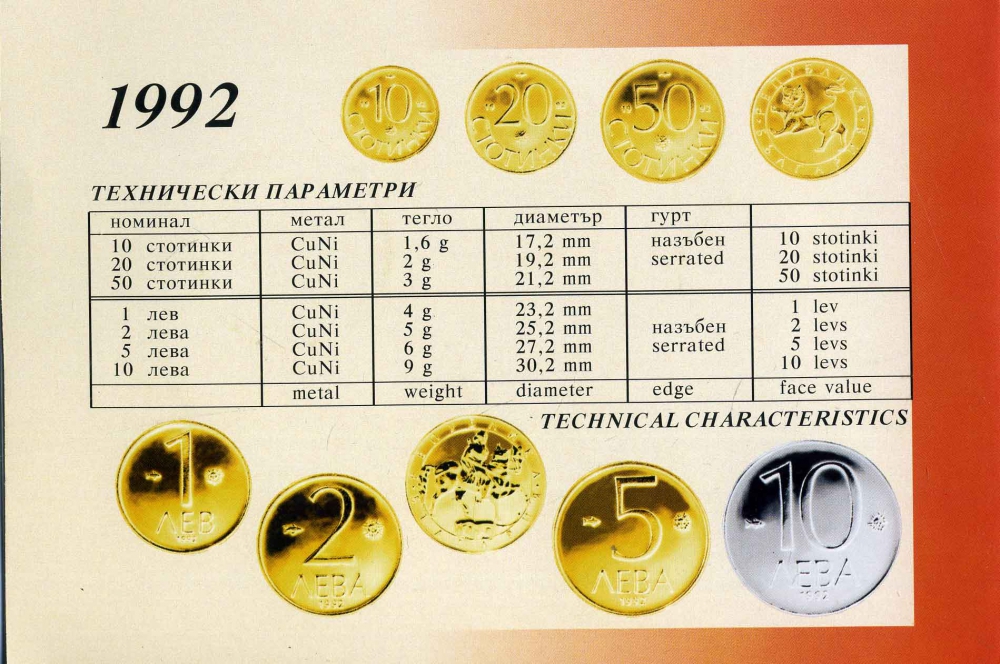 Болгария набор из 7 монет 1992 официальный набор банка Болгарии в оригинальном картонном буклете UNC 3-6-4-28