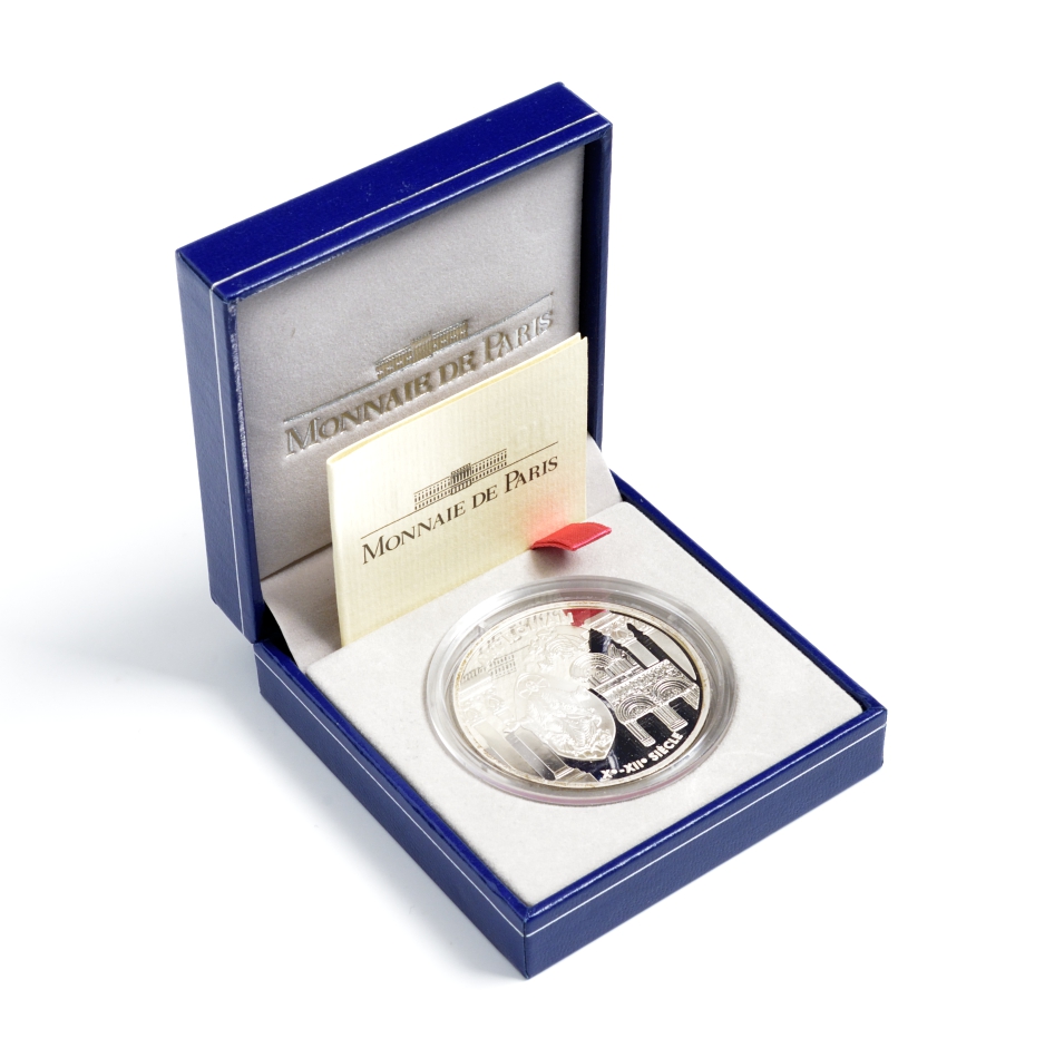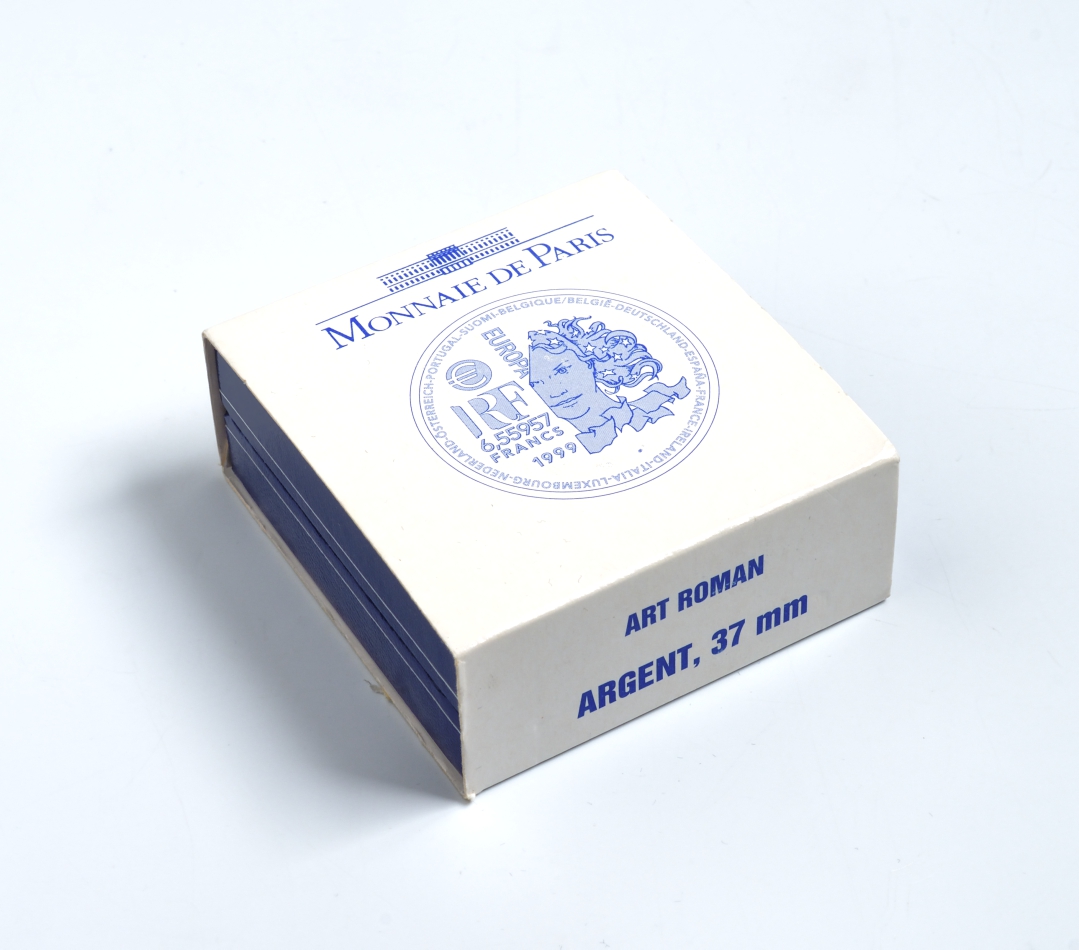 Франция 1 евро = 6,55957 франков 2000 романский стиль в архитектуре Средневековья (X-XII века) в коробке с сертификатом KM 1245 серебро PROOF 4-3-3-09