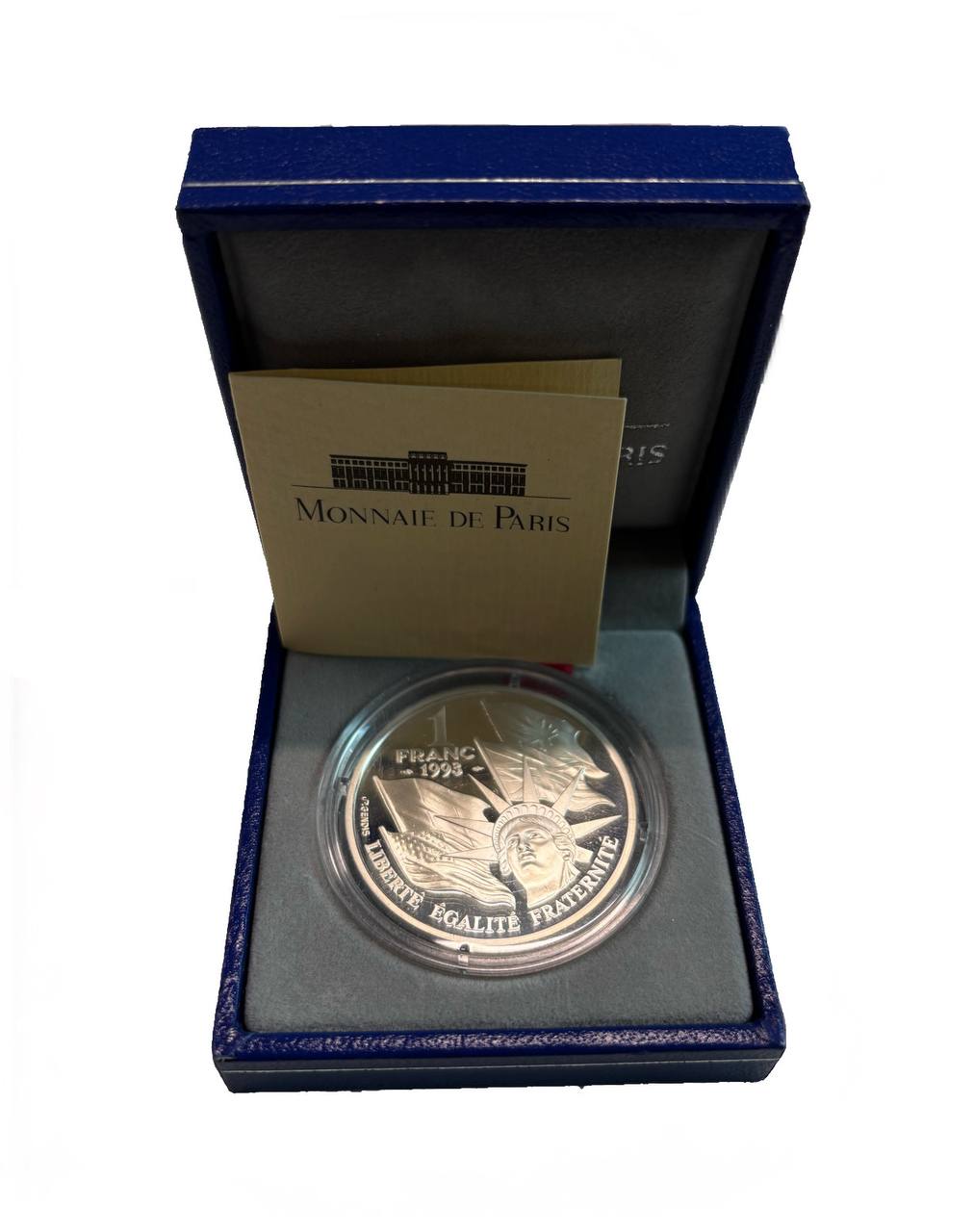 Франция 1 франк 1993 D-DAY, высадка в Нормандии, в оригинальной коробке, сертификат KM 1014 серебро PROOF 1-6-4-27