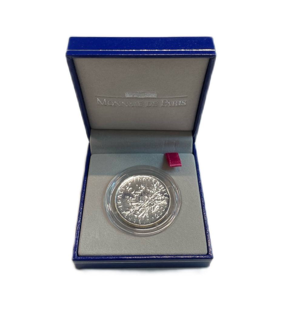 Франция 5 франков 2001 прощай франк, в оригинальной коробке, в оригинальной коробке KM 1309 серебро UNC 3-4-11-21