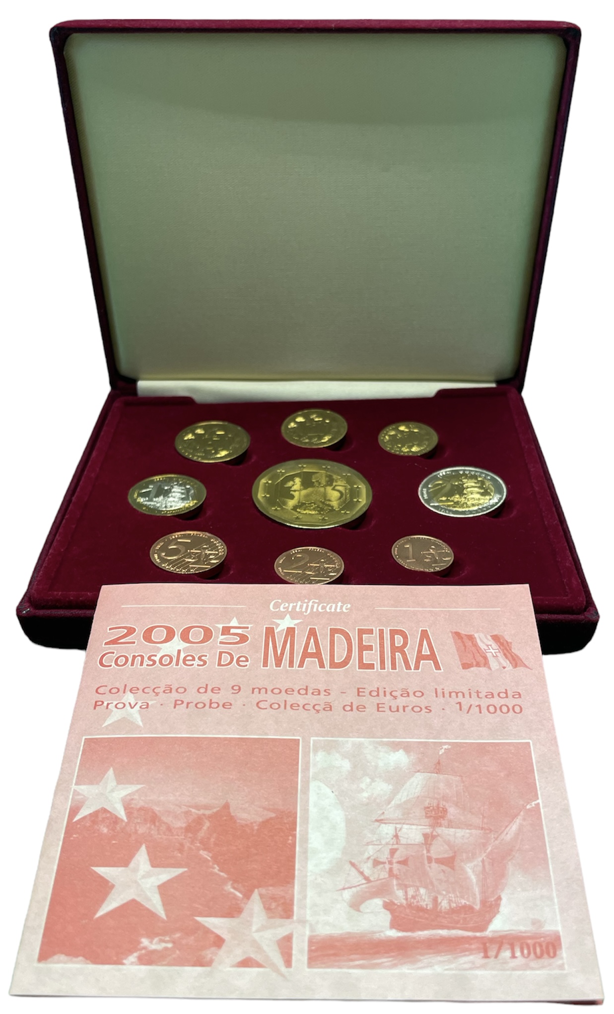 -Мадейра евронабор из 9 монет (с 5 евро) 2005 пробники, PROBA, в оригинальной коробке, с сертификатом PROOF 4-3-4-09НовинкиАнтичность и раннее СредневековьеМонеты - ГерманияМонеты - Австралия и ОкеанияМонеты - АзияМонеты - АмерикаМонеты - АфрикаМонеты - Россия, СССР, страны СНГ и БалтииБанкнотыАксессуары, ЛитератураОткрытки, карточкиАкции, облигацииЖетоны, Медали, ЗнакиМаркиКартины, декоративно-прикладное искусство