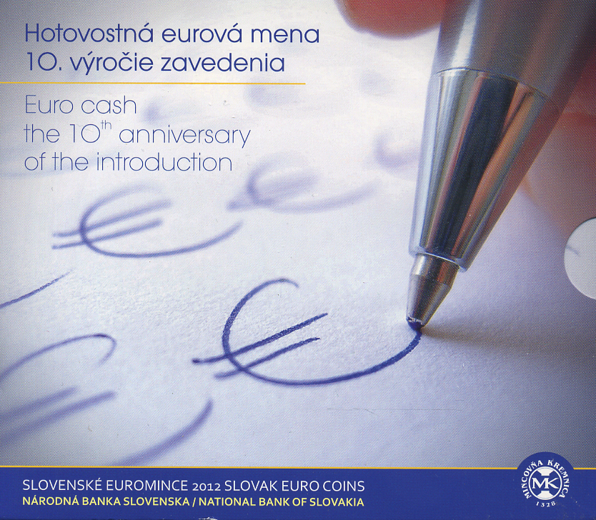 Словакия евронабор из 8 монет + 2 евро 2012 10 лет введения евро, как валюты, в пластиковой запайке и оригинальном картонном буклете UNC 1-4-2-19