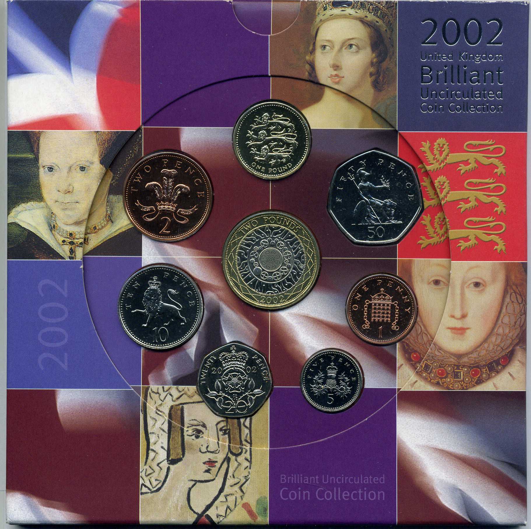 Великобритания набор из 8 монет 2002 английские королевы, в оригинальном картонном буклете BUNC 3-6-3-12