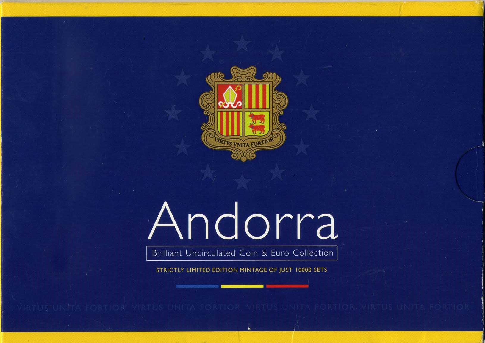 Андорра набор из 9 монет 1999-2002 включая евро Франции и Испании биметалл UNC 00-00