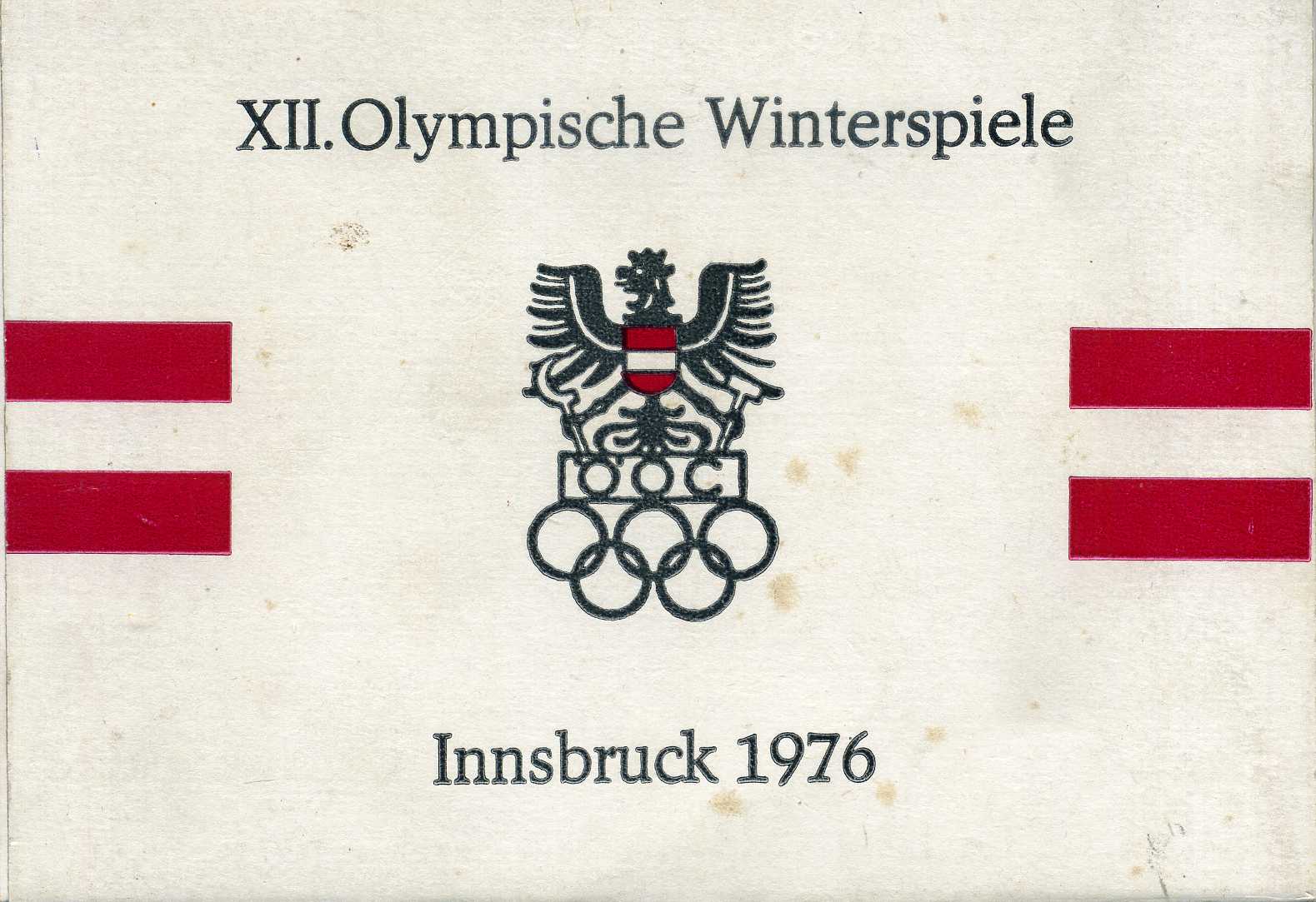 Австрия набор из 7 монет по 100 шиллингов 1974 олимпийские игры 1976 года в Инсбруке, два монетных двора , Вена (v) И Холл (h), в пластике и коробке KM 2926, 2927, 2928, 2929 серебро PROOF 3-4-8-21