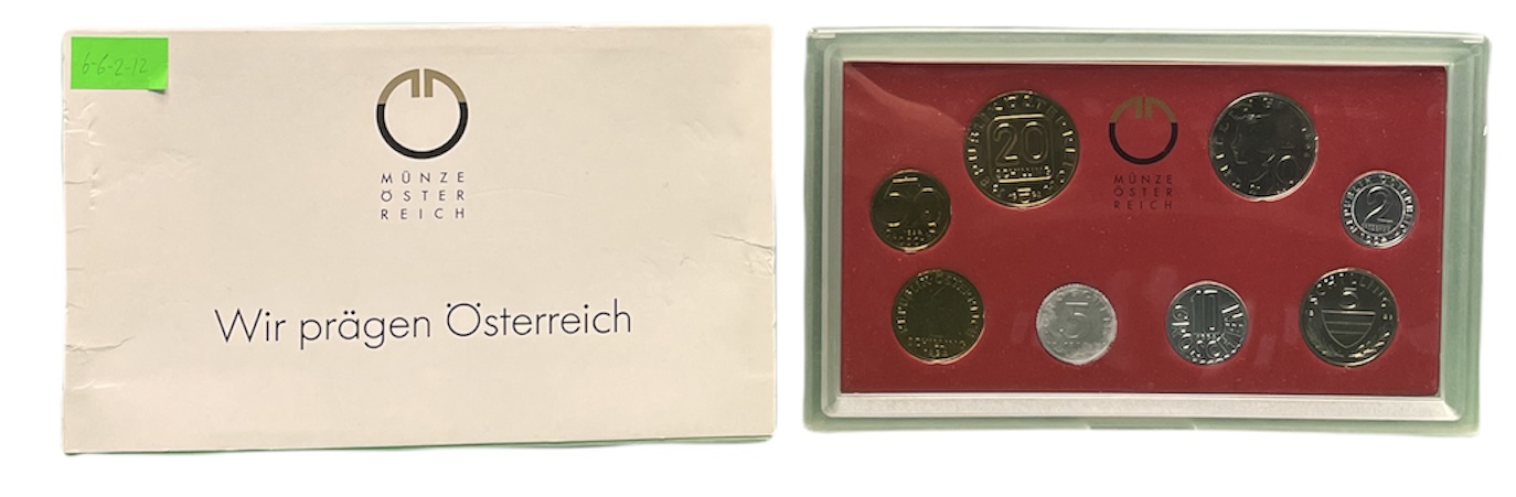 Австрия набор из 8 монет 1994 официальный набор, 2, 5, 10, 50 грошей, 1, 5, 10, 20 шиллингов, 800 лет Венскому мондвору, в пластике KM MS 3 UNC 6-6-2-12
