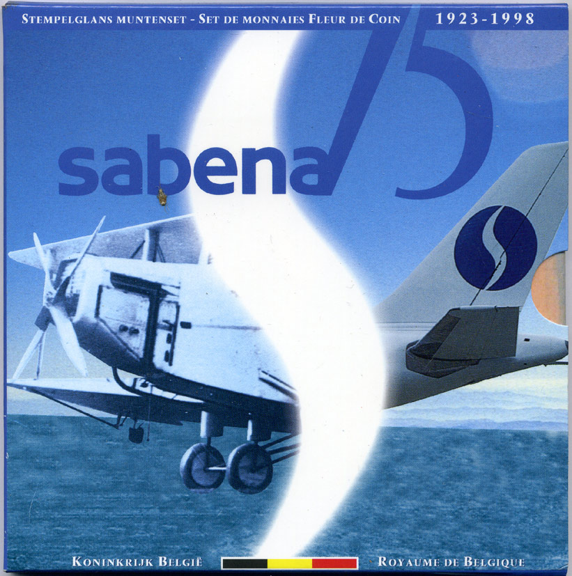 Бельгия набор из 10 монет + жетон монетного двора 1998 Belgie-Belgique, 75 лет авиакомпании Собена (SABENA) (1925-1998), в оригинальном буклете, в запайке KM MS 10 BUNC 6-5-3-15