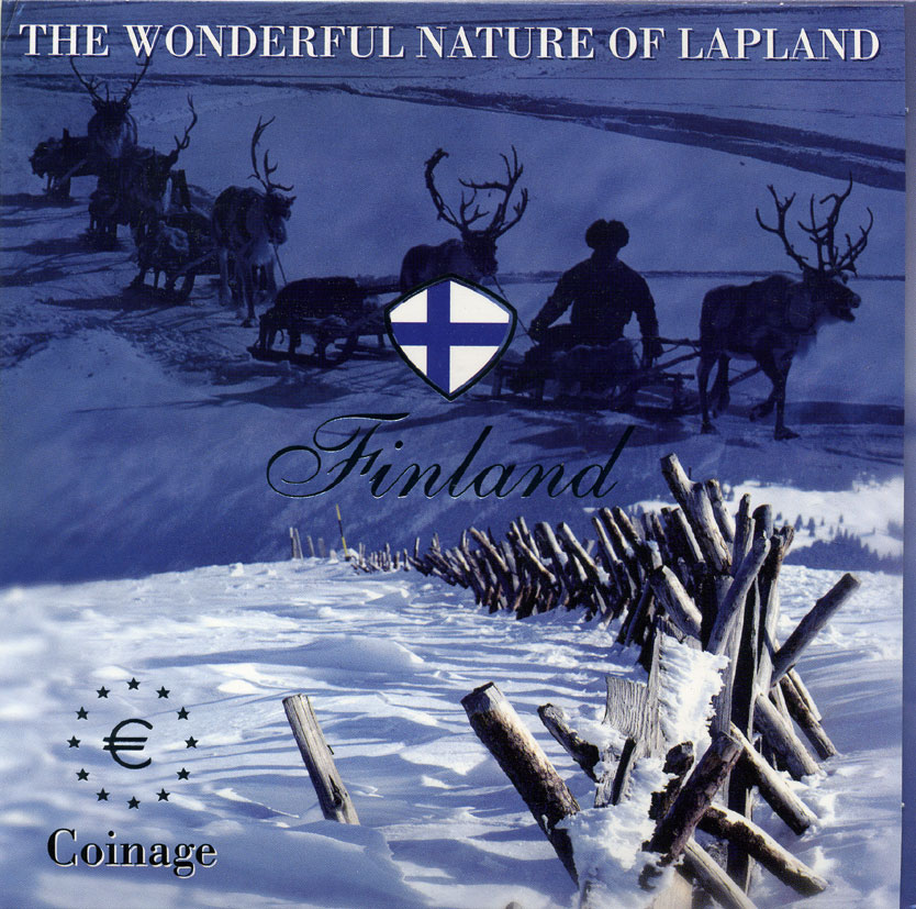 Финляндия евронабор из 8 монет 2004 природа Лапландии, в оригинальном буклете биметалл UNC 5-6-1-11