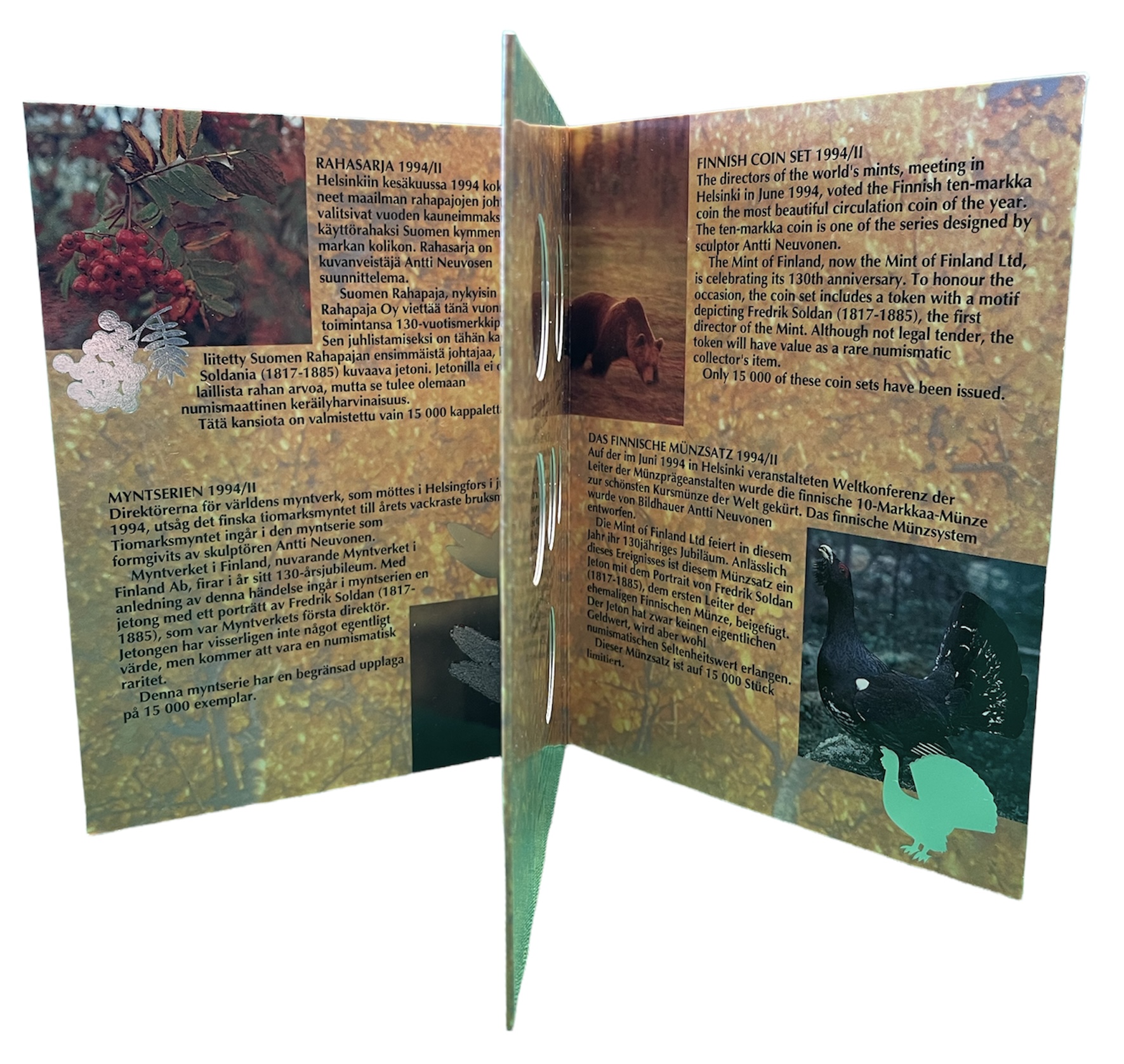 Финляндия госнабор из 5 монет плюс оригинальный жетон 1994 UNC 3-4-1-50