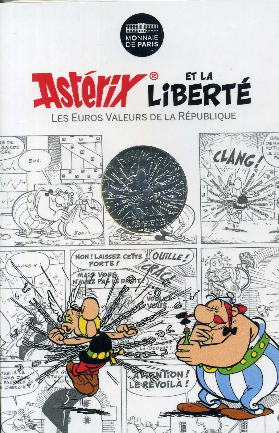 Франция 10 евро 2015 серия Астерикс и свобода, Астерикс разрывающий цепи и Обеликс, в оригинальном буклете KM NEW серебро UNC 1-4-3-23