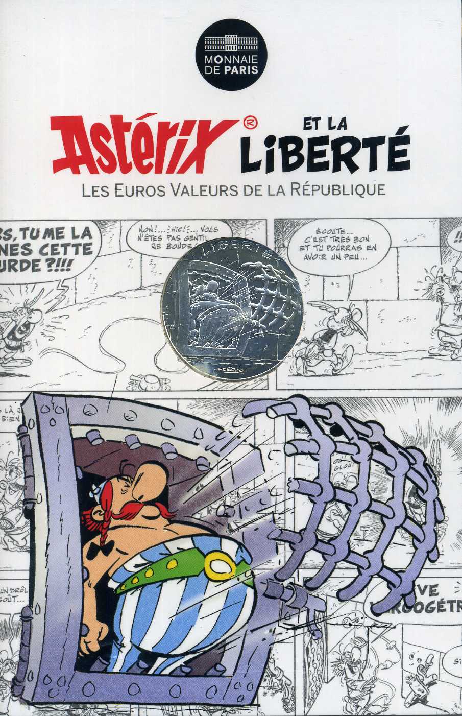 Франция 10 евро 2015 серия Астерикс и свобода, Обеликс выбивает решетку животом, в оригинальном буклете KM NEW серебро UNC 1-4-3-11