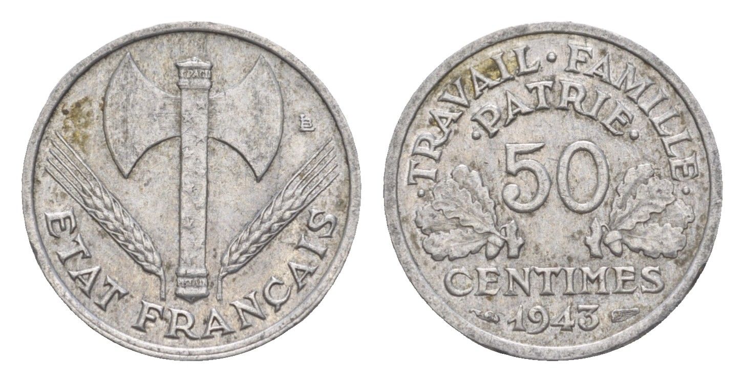 Франция 50 сантимов 1943 KM 914 алюминий 4174-834