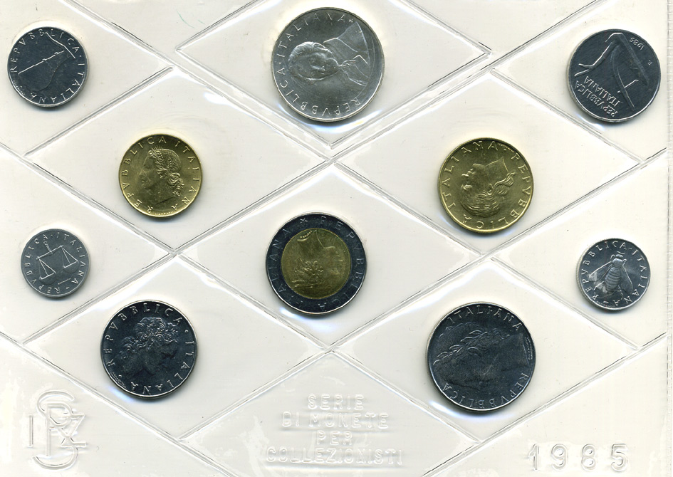 Италия госнабор из 10 монет 1985 200 лет со дня рождения Алессандро Мадзони KM MS 14 серебро UNC 7-5-1-1