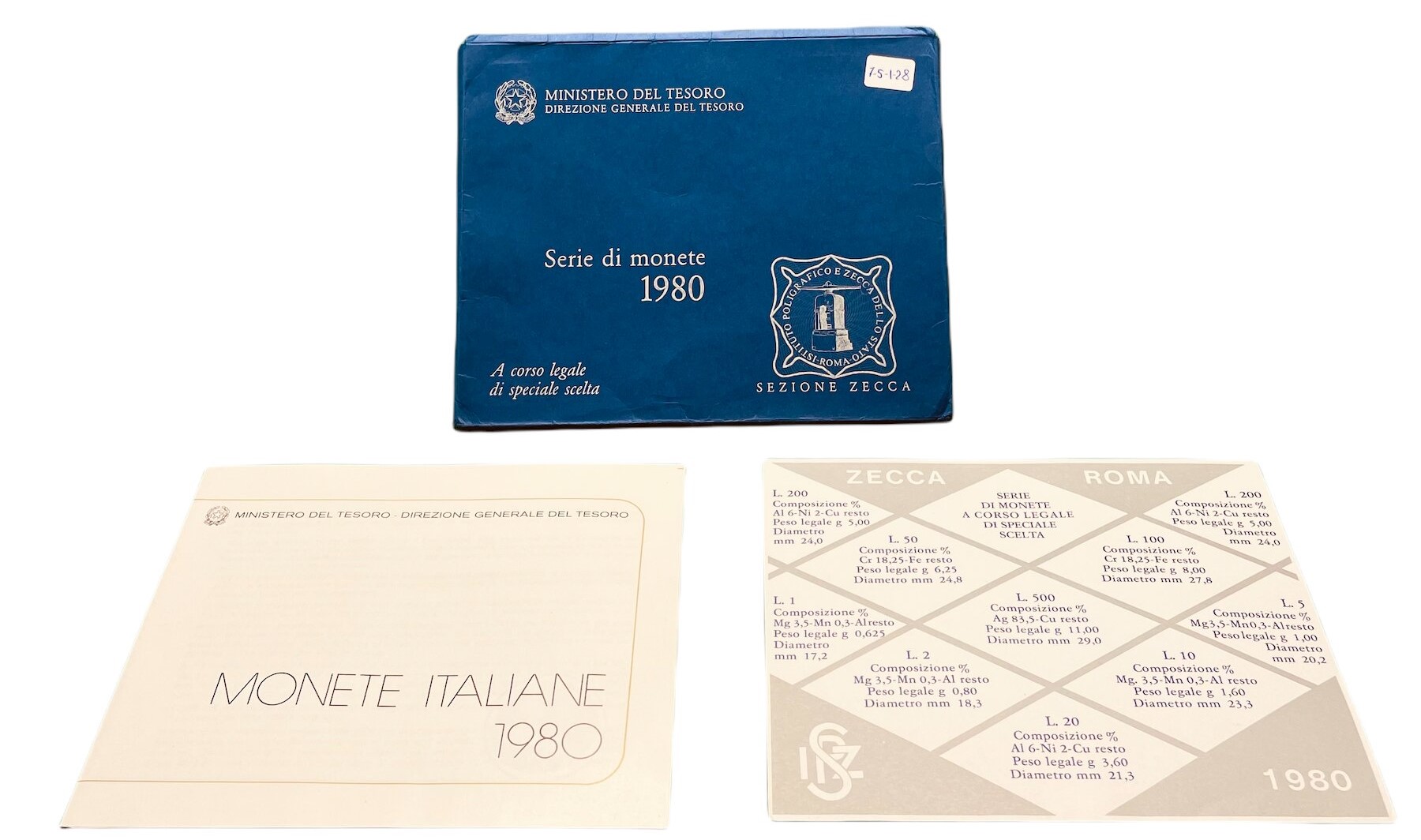 Италия госнабор из 10 монет + жетон 1980 серебро UNC 7-5-1-28