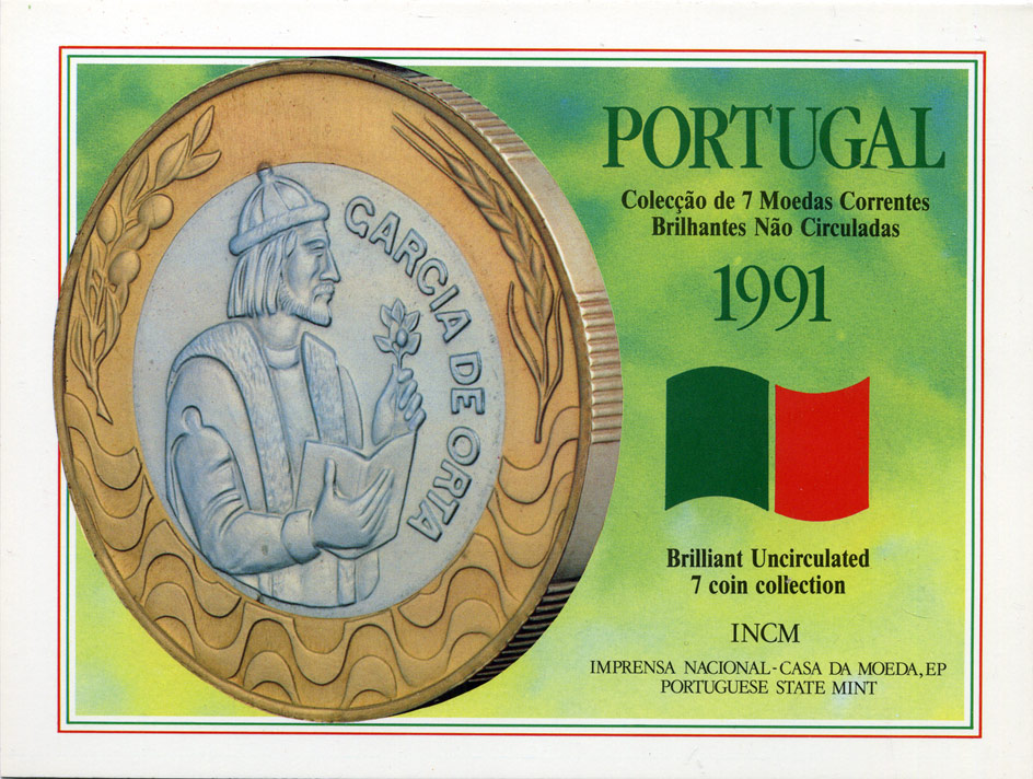 Португалия набор из 7 монет 1991 в оригинальном картонном буклете KM MS15 (KM 631-634, 636, 645.1, 655) BUNC 5-4-3-25