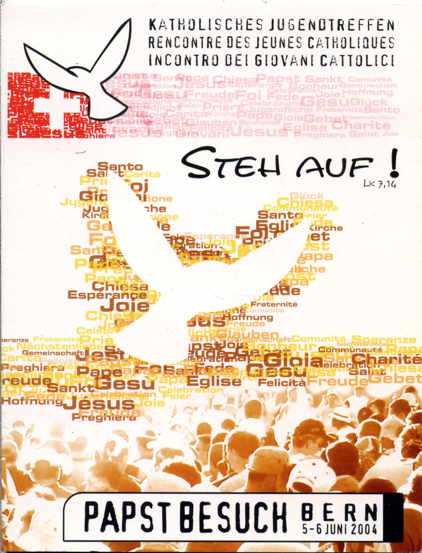 Швейцария 5 евро 2004 европробник, первый съезд молодых католиков, визит Иоанна Павла II, в буклете биметалл BUNC 00-00