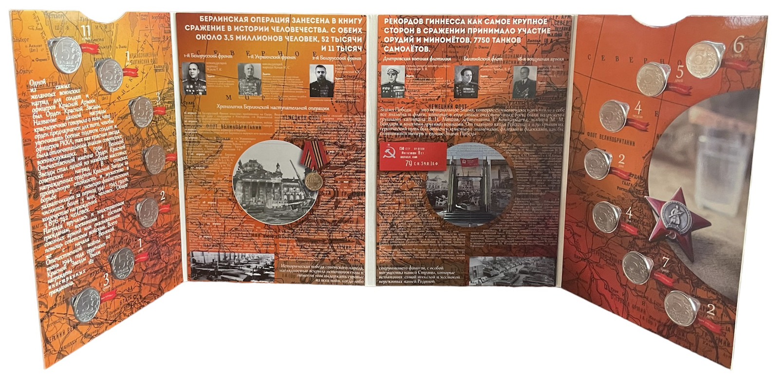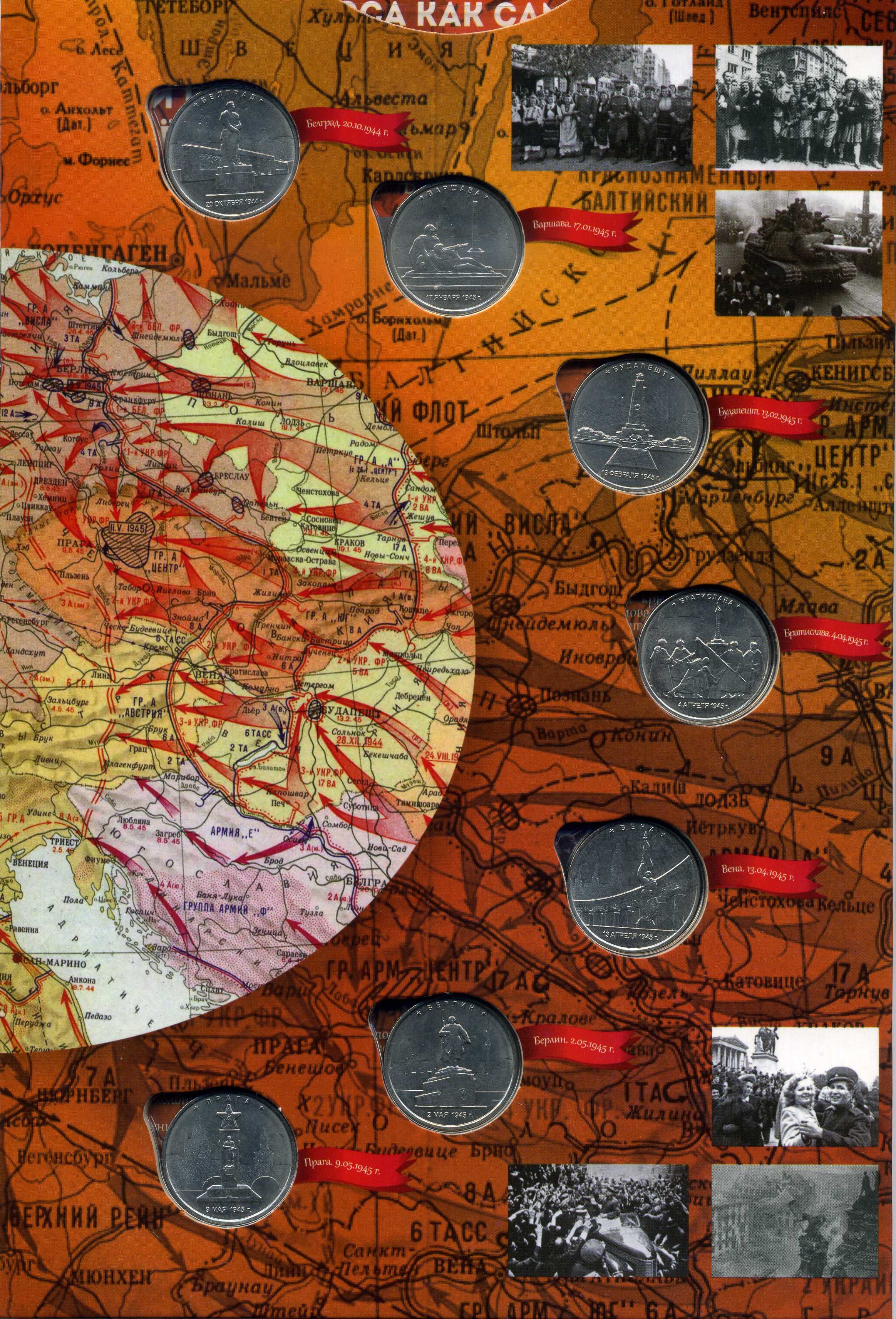 Россия альбом "города - столицы государств, освобожденные советскими войсками от немецко-фашистских захватчиков" 2016 с 14 монетами с номиналом в 5 рублей медно-никель UNC 4-3-5-04