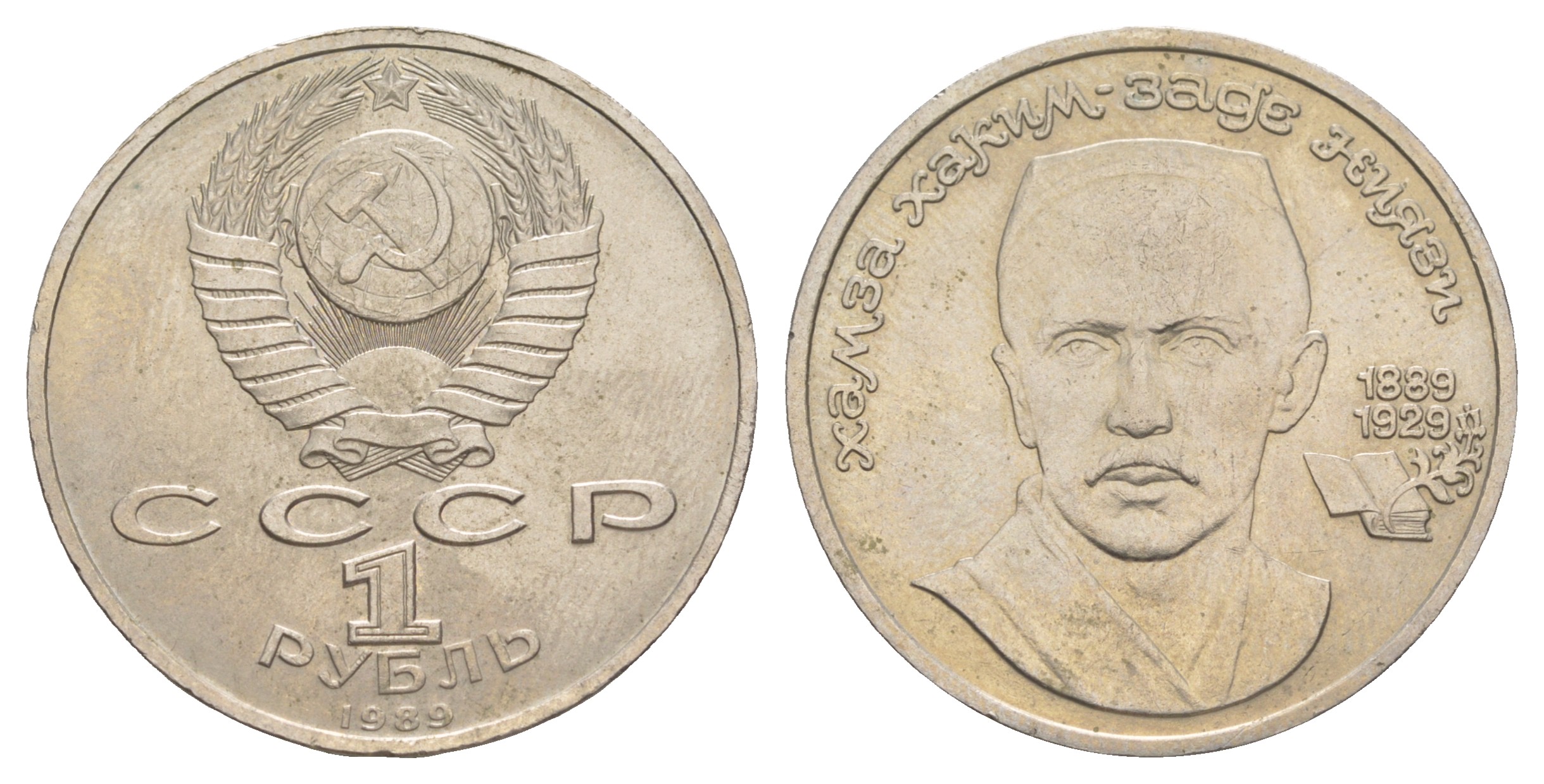 СССР 1 рубль 1989 100 лет со дня рождения Хамзы Хакимзаде Ниязи, в оригинальной бановской упаковке Государственного банка СССР Y 232 медь никель цинк UNC 6-6-2-11