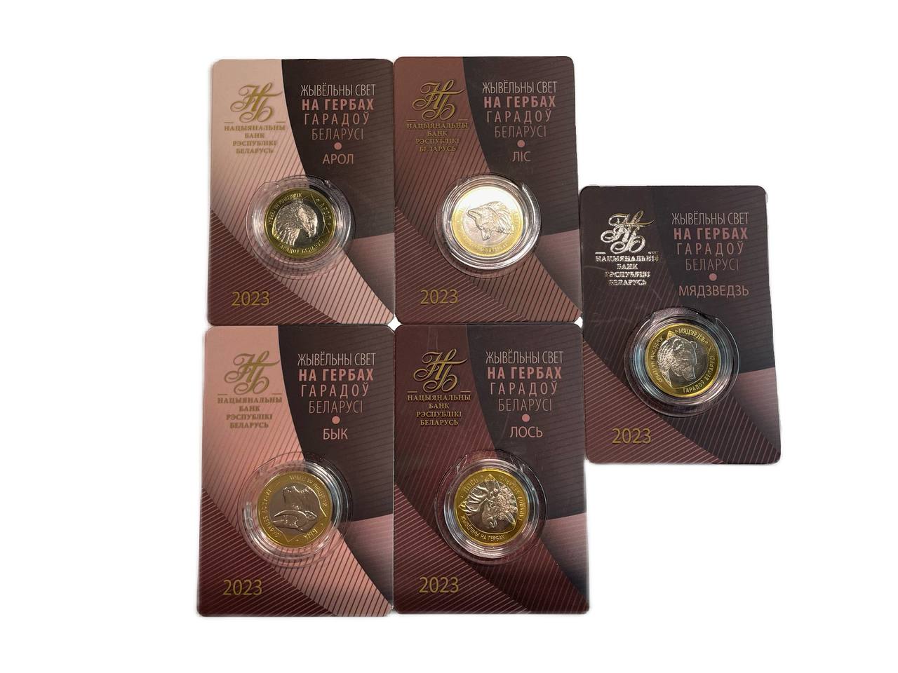 Беларусь набор из 5 монет номиналом 2 рубля 2023 животный мир на гербах городов Беларуси KM NEW биметалл UNC 3-4-7-07