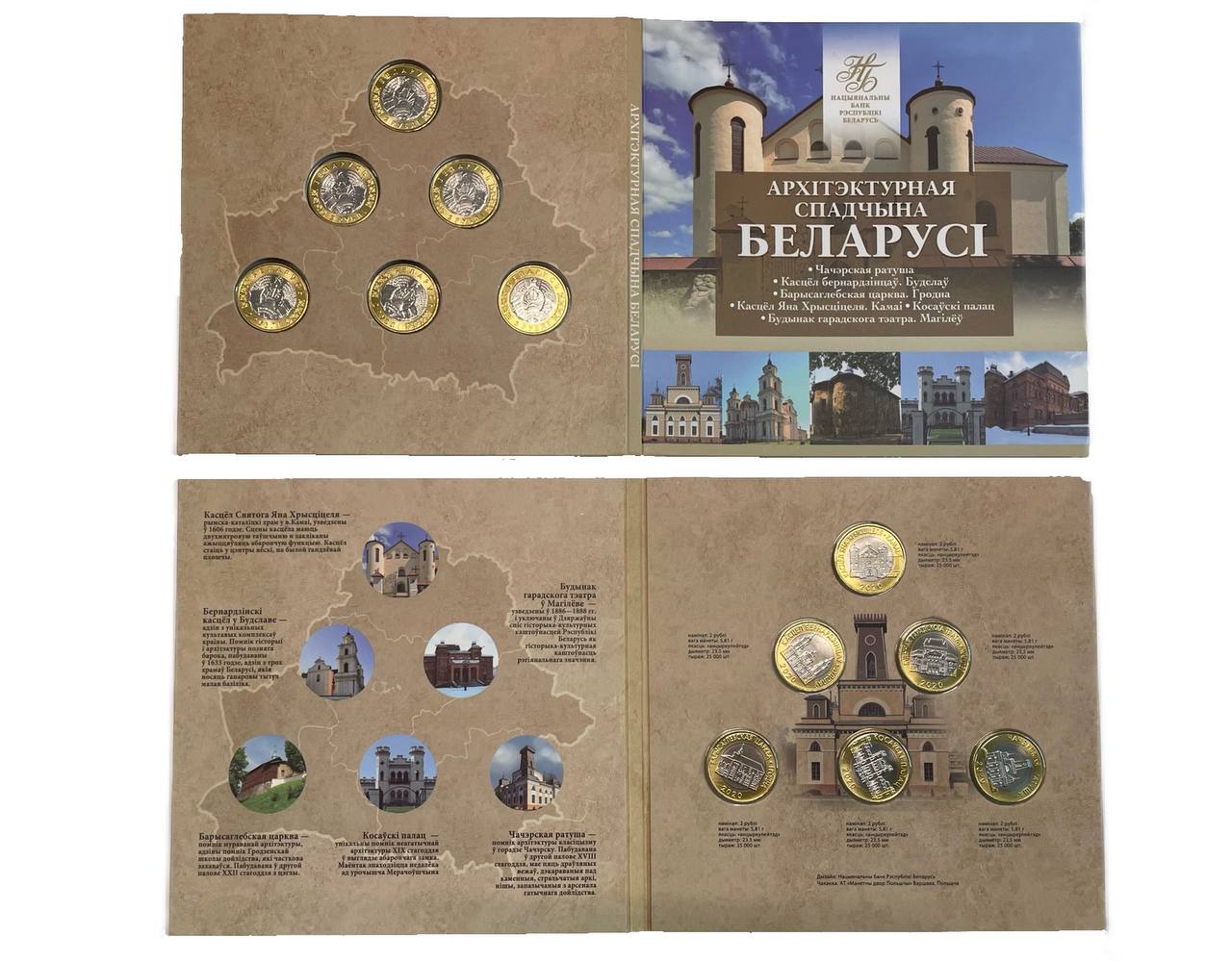 Беларусь официальный набор из 6 монет номиналом 2 рубля 2020 архитектурное наследие Беларуси KM NEW биметалл UNC 1181-3-08