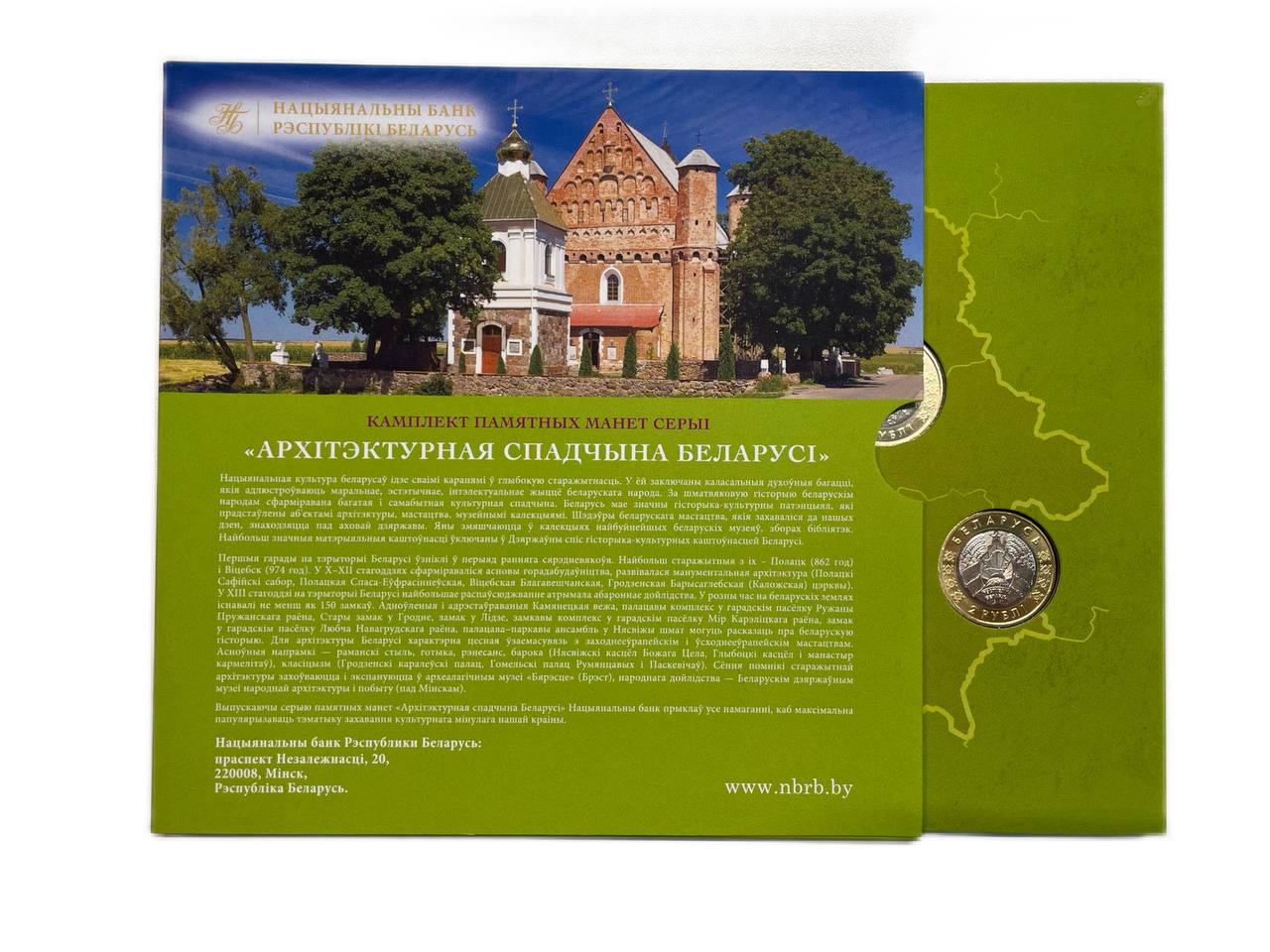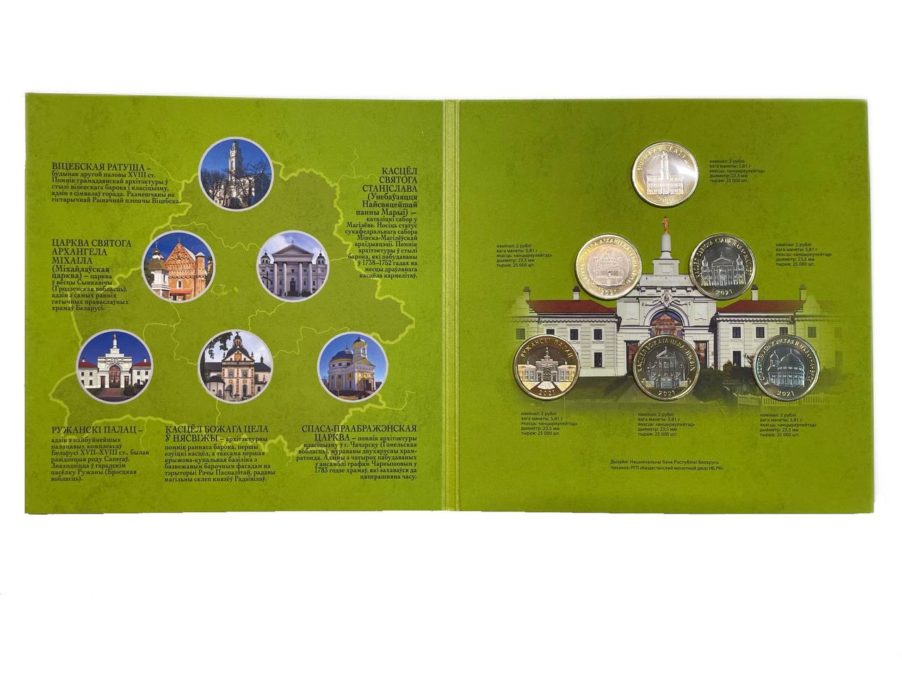 Беларусь официальный набор из 6 монет номиналом 2 рубля 2021 архитектурное наследие Беларуси KM NEW биметалл UNC 1181-3-09