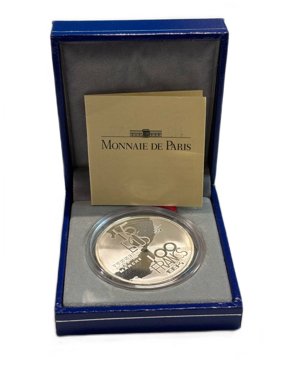 Франция 100 франков 1994 Тоннель под Ла-Маншем, в оригинальной упаковке, с сертификатом KM 1060 серебро PROOF 8-2-05-06