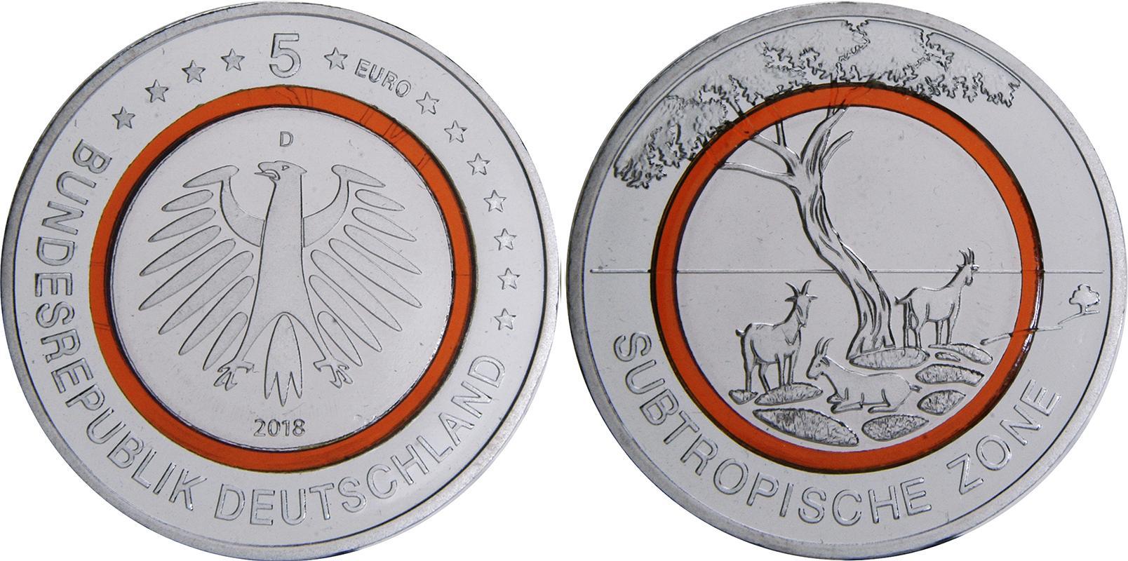 ФРГ 5 евро 2018 D, субтропическая зона земли, в оригинальной упаковке KM 370 биметалл PROOF 1-3-1-07